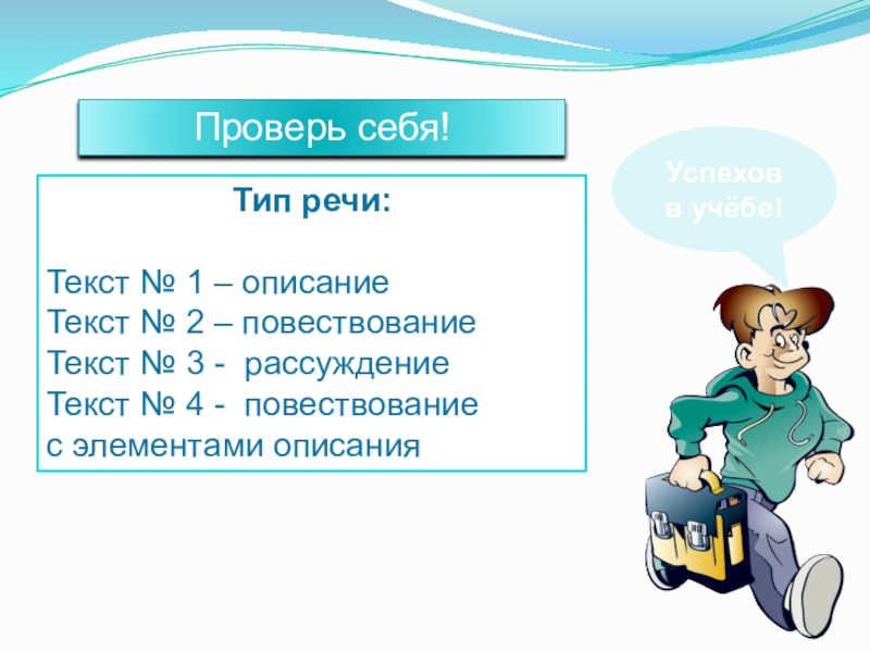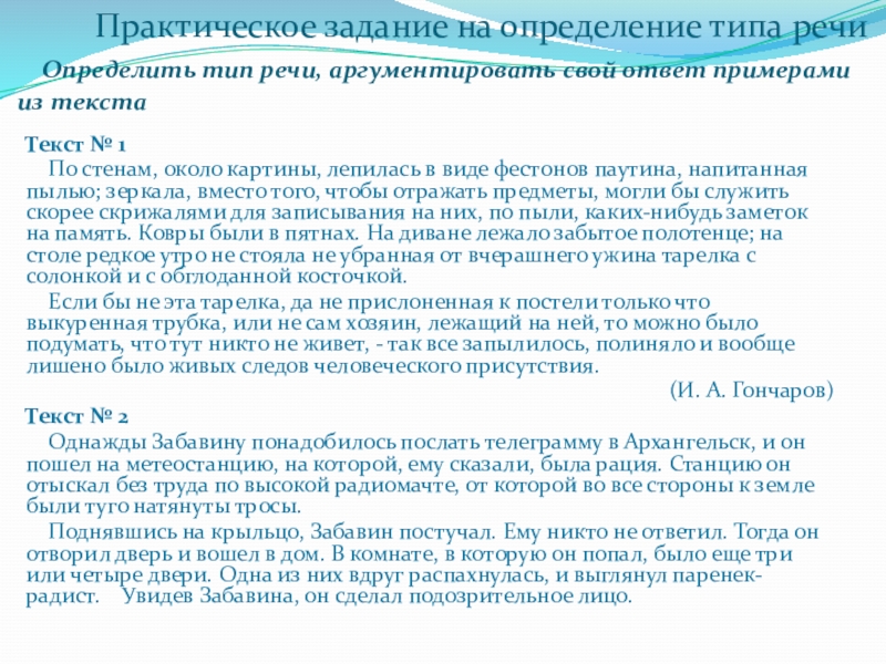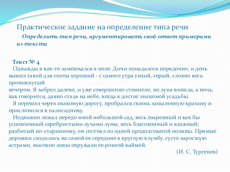 Определить тип речи, аргументировать свой ответ примерами из текста