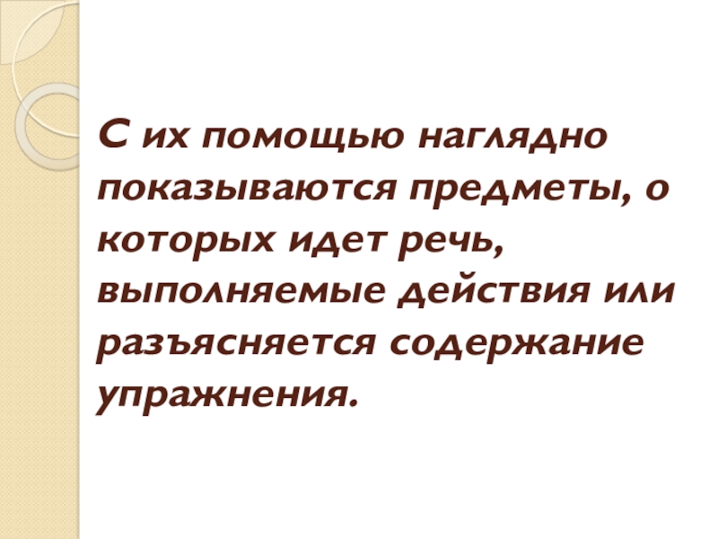 Слайд 9С их помощью наглядно показываются предметы, о которых идет речь, выполняемые