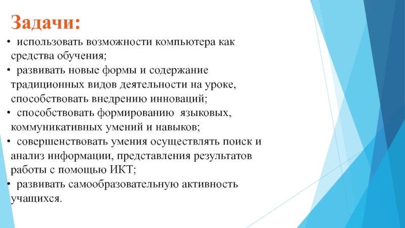 использовать возможности компьютера как средства обучения;