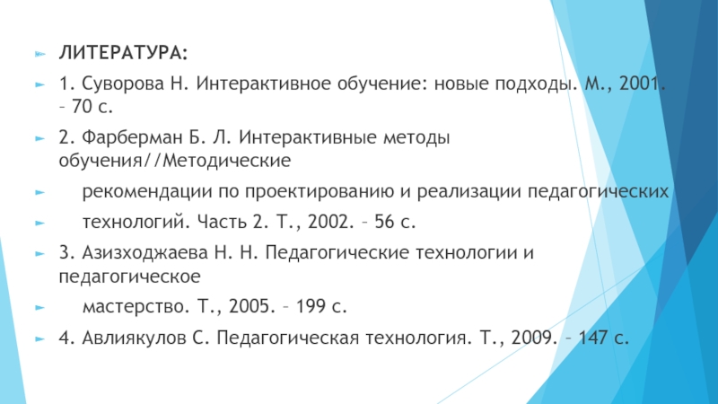 2. Фарберман Б. Л. Интерактивные методы обучения//Методические