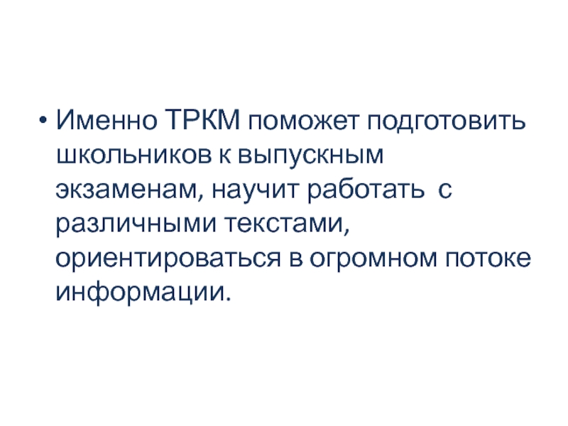 Слайд 5Именно ТРКМ поможет подготовить школьников к выпускным экзаменам, научит работать с