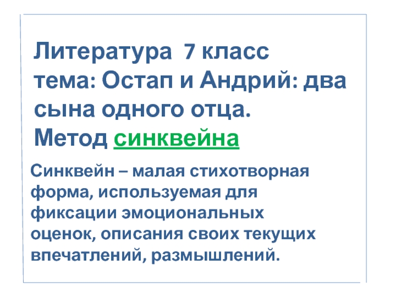Синквейн – малая стихотворная форма, используемая для фиксации эмоциональных оценок, описания своих текущих впечатлений, размышлений.