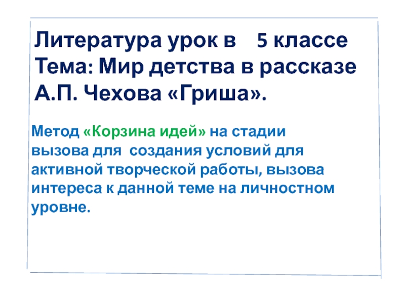 Метод «Корзина идей» на стадии вызова для создания условий для активной творческой работы, вызова интереса к данной теме на личностном уровне.