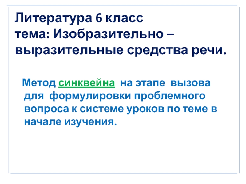 синквейна на этапе вызова для формулировки проблемного вопроса к системе уроков по теме в начале изучения.