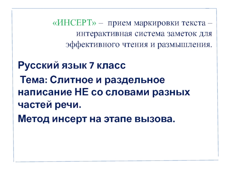 «ИНСЕРТ» – прием маркировки текста – интерактивная система заметок для эффективного