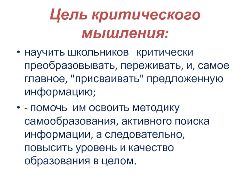 научить школьников критически преобразовывать, переживать, и, самое главное,