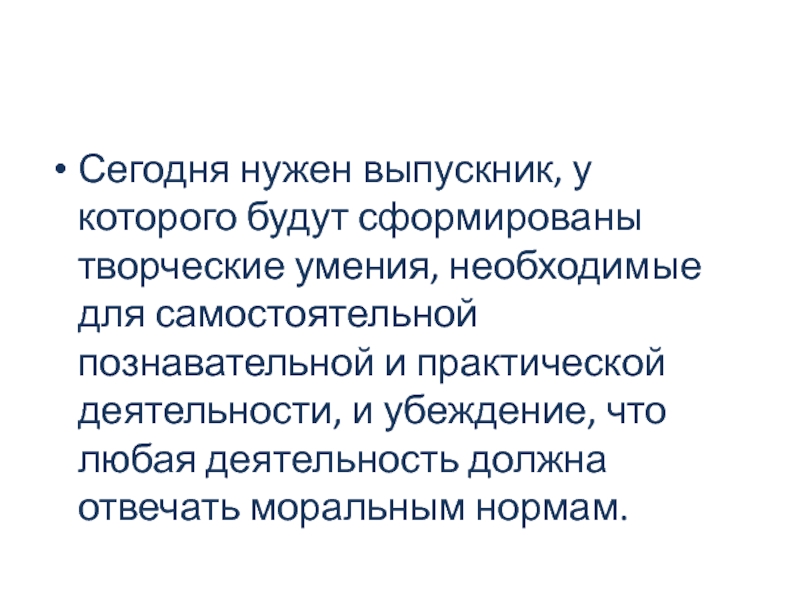 Сегодня нужен выпускник, у которого будут сформированы творческие умения, необходимые