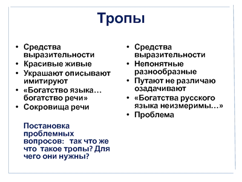 Постановка проблемных вопросов: так что же что такое тропы? Для чего они нужны?