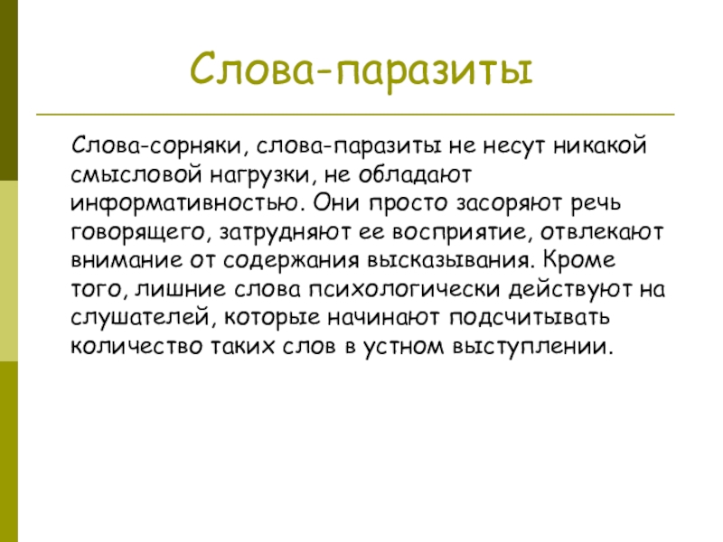 Слова-сорняки, слова-паразиты не несут никакой смысловой нагрузки, не обладают