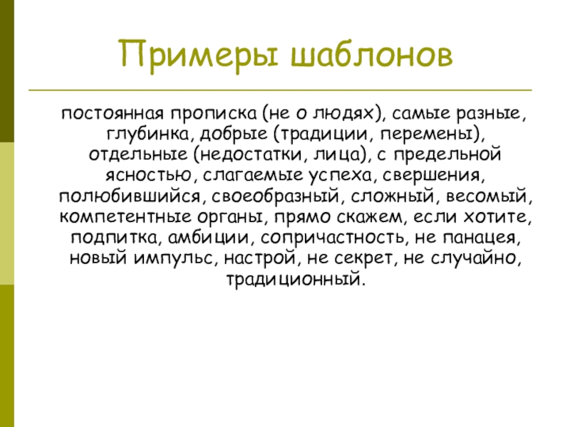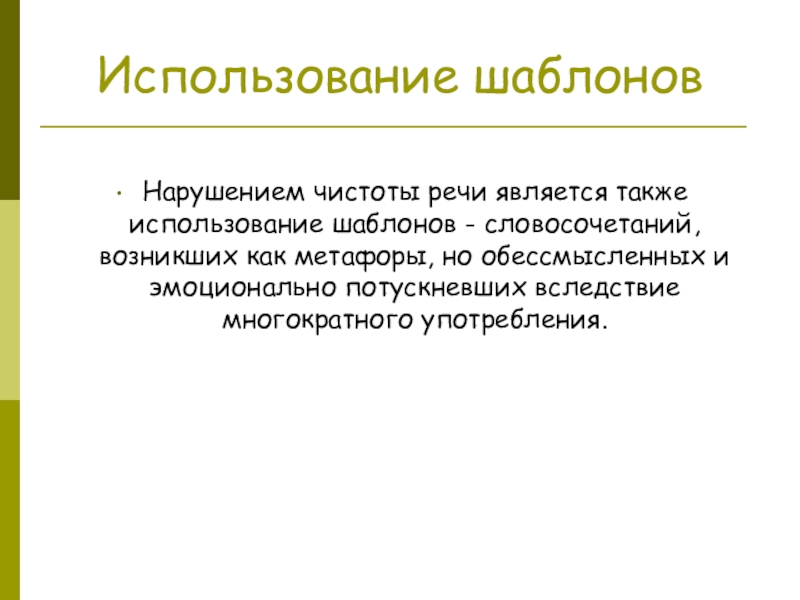 Нарушением чистоты речи является также использование шаблонов - словосочетаний, возникших