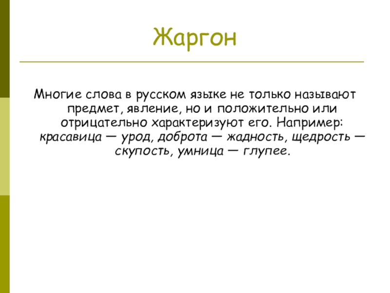и положительно или отрицательно характеризуют его. Например: красавица — урод, доброта — жадность, щедрость — скупость, умница — глупее.