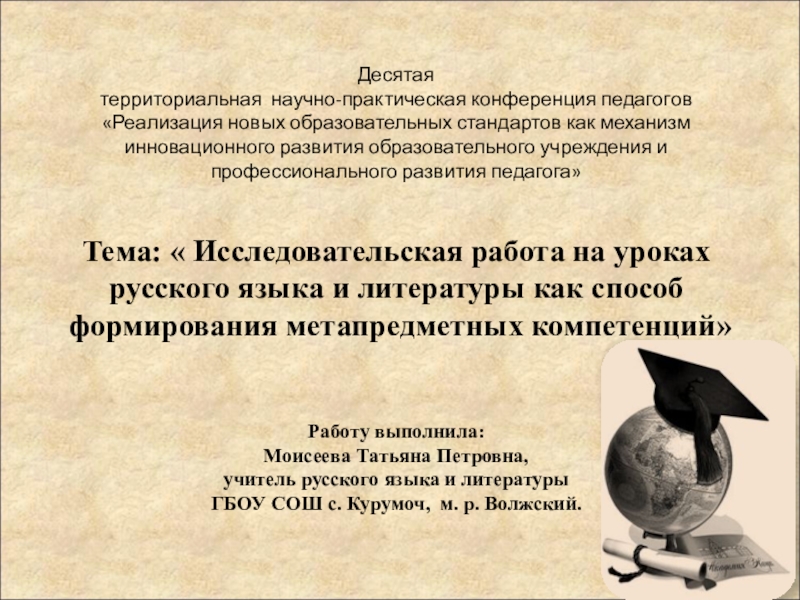 Тема: « Исследовательская работа на уроках русского языка и литературы как способ формирования метапредметных компетенций»