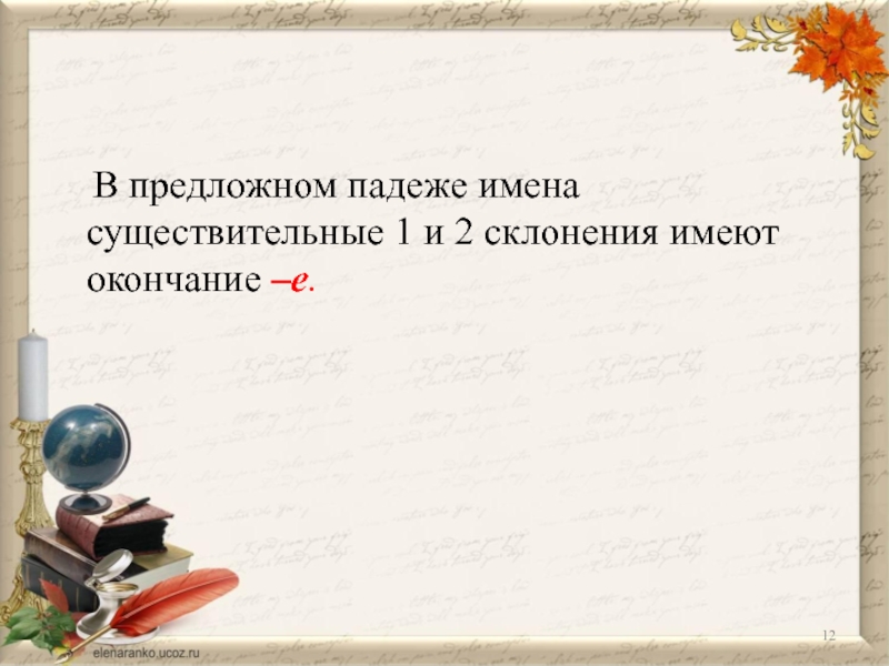 Слайд 12 В предложном падеже имена существительные 1 и 2 склонения