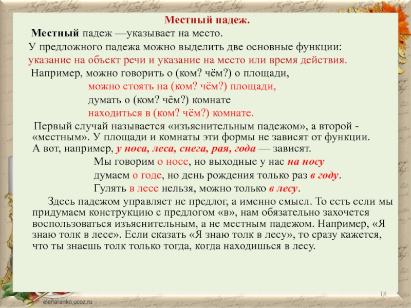 Предложный падеж употребляется только с предлогами (в, на, о, по, при) и сочетается с глаголами, именами существительными, именами прилагательными.