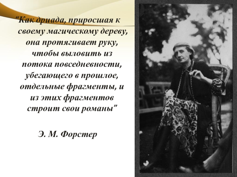 Слайд 24“Как дриада, приросшая к своему магическому дереву, она протягивает руку, чтобы