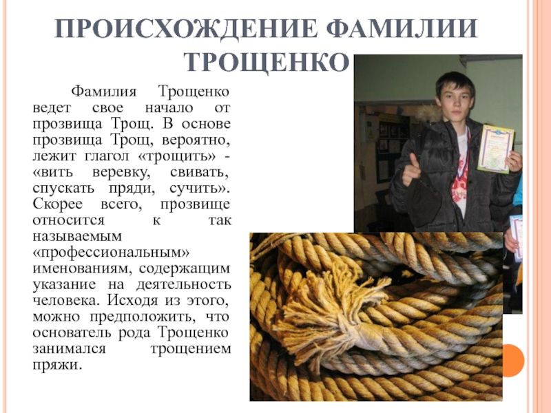 Слайд 13ПРОИСХОЖДЕНИЕ ФАМИЛИИ ТРОЩЕНКО