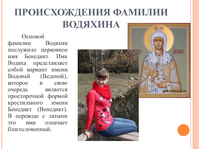 Слайд 25ПРОИСХОЖДЕНИЯ ФАМИЛИИ ВОДЯХИНА