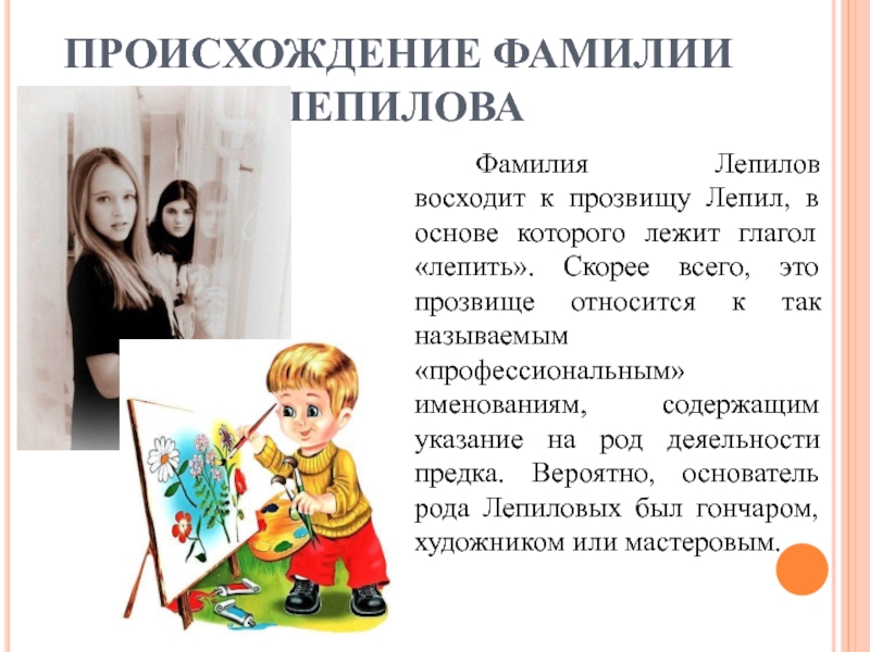 Слайд 10ПРОИСХОЖДЕНИЕ ФАМИЛИИ ЛЕПИЛОВА