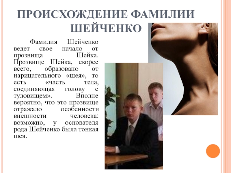 Слайд 20ПРОИСХОЖДЕНИЕ ФАМИЛИИ ШЕЙЧЕНКО