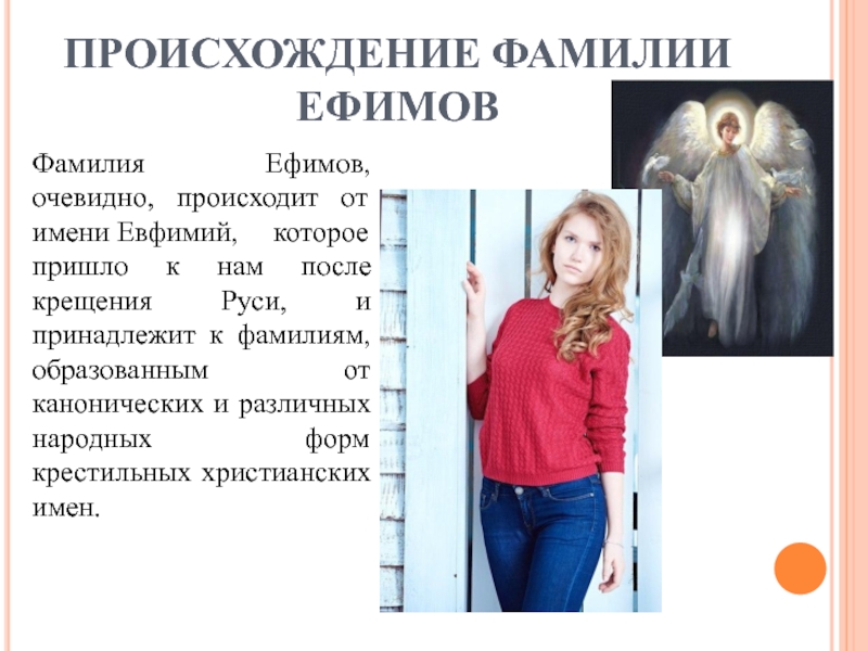 Фамилия Ефимов, очевидно, происходит от имени Евфимий, которое пришло к