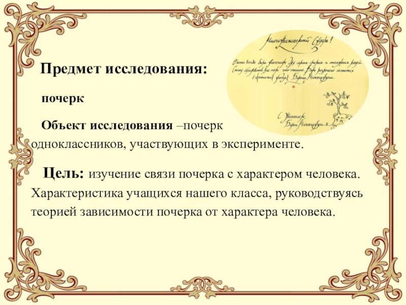 Объект исследования –почерк одноклассников, участвующих в эксперименте.