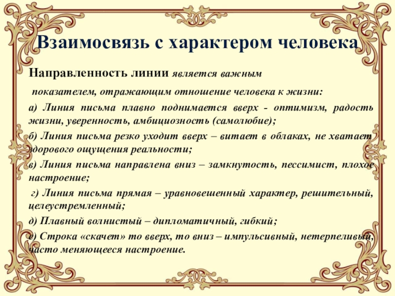 а) Линия письма плавно поднимается вверх - оптимизм, радость жизни, уверенность, амбициозность (самолюбие);
