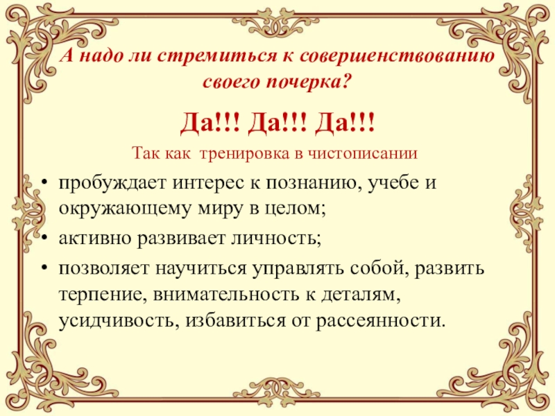 Слайд 36А надо ли стремиться к совершенствованию своего почерка?