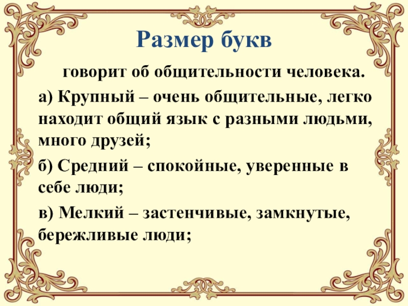 в) Мелкий – застенчивые, замкнутые, бережливые люди;