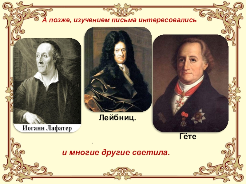 Слайд 18Первый, кто написал научную работу о взаимосвязи почерка и психологического портрета
