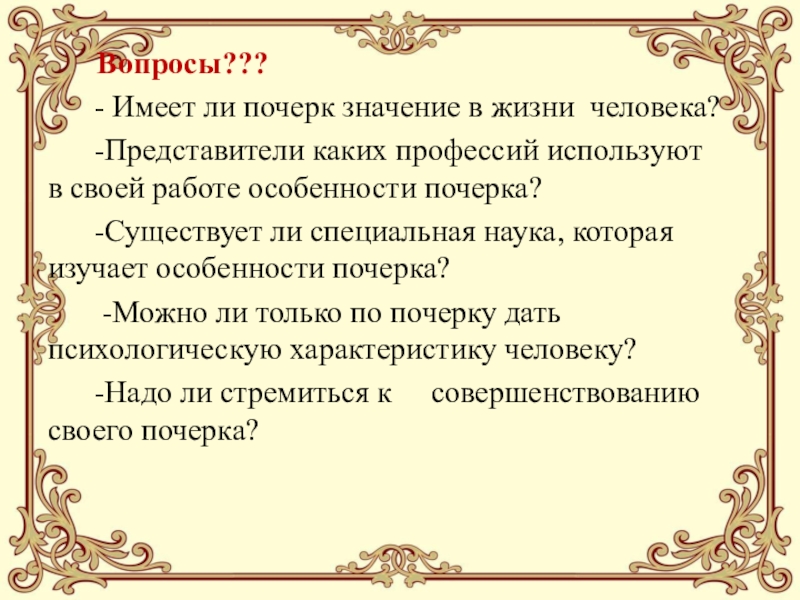 Слайд 10Имеет ли почерк большое значение в жизни человека?