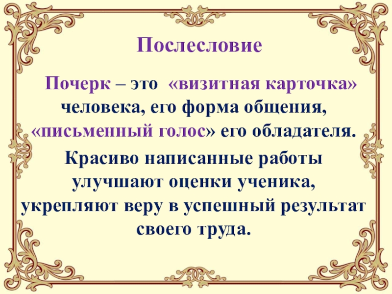 Красиво написанные работы улучшают оценки ученика, укрепляют веру в успешный результат своего труда.