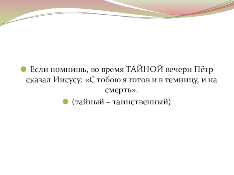 Слайд 23Если помнишь, во время ТАЙНОЙ вечери Пётр сказал Иисусу: «С тобою