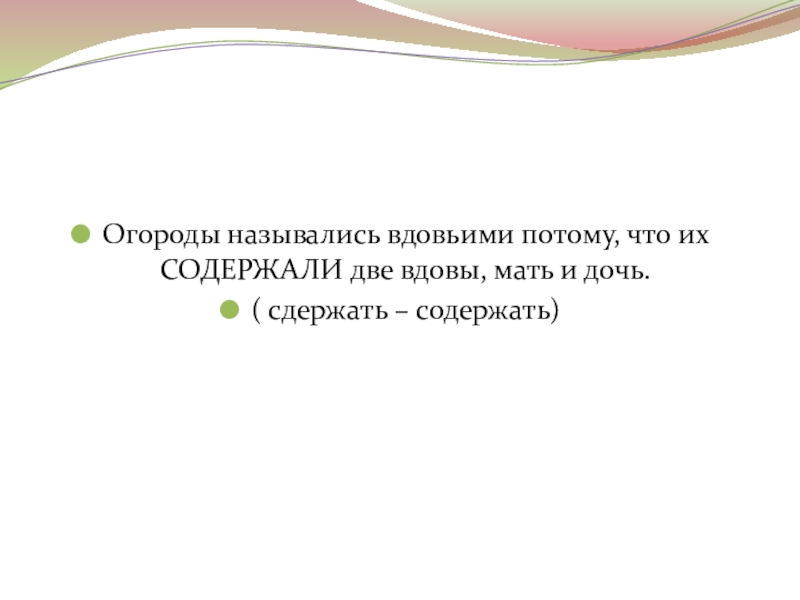 Слайд 21Огороды назывались вдовьими потому, что их СОДЕРЖАЛИ две вдовы, мать и