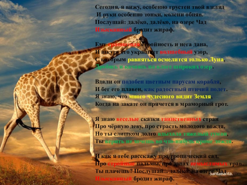 Слайд 20Сегодня, я вижу, особенно грустен твой взгляд