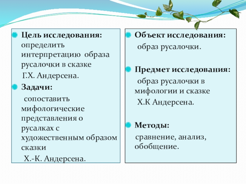 Слайд 2Цель исследования: определить интерпретацию образа русалочки в сказке