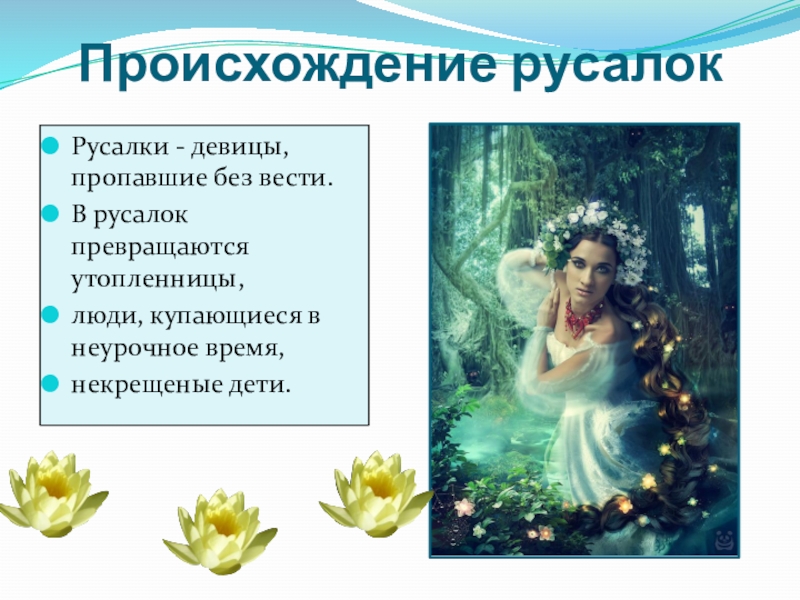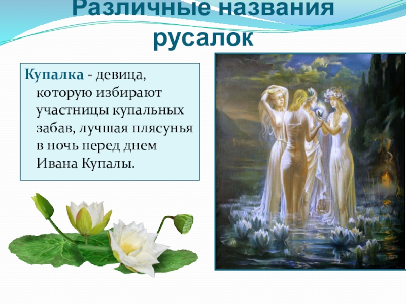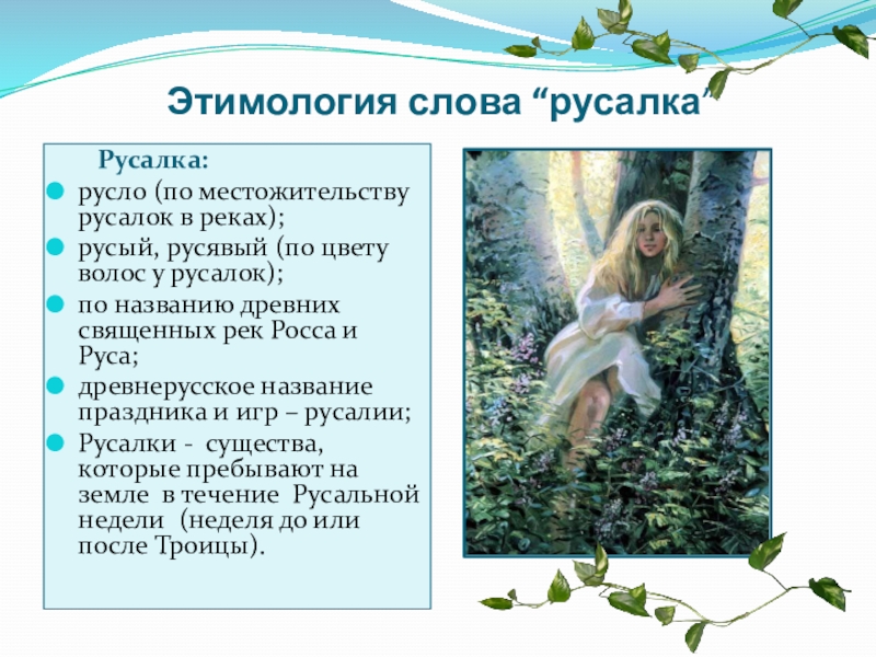 Слайд 14«Русалья неделя» начинается с Троицына дня. В эту пору русалки выходят