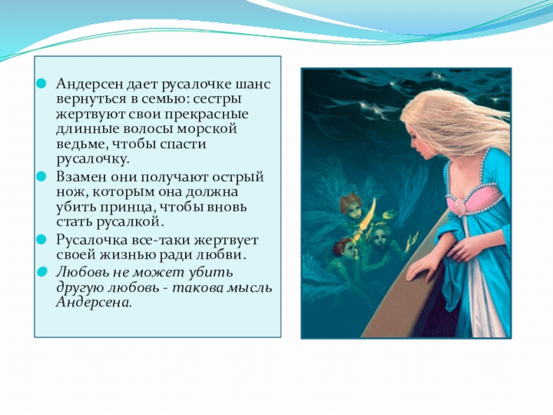 Андерсен дает русалочке шанс вернуться в семью: сестры жертвуют свои прекрасные