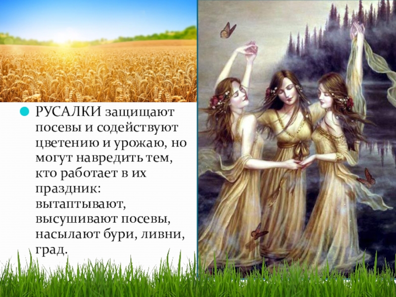 Слайд 13РУСАЛКИ защищают посевы и содействуют цветению и урожаю, но могут навредить