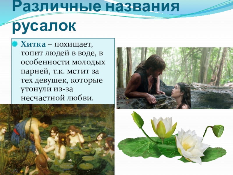 Слайд 18Интерпретация образа русалки в мифологии и сказке Х.-К. Андерсена
