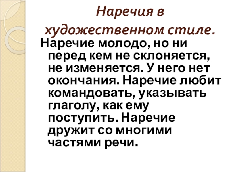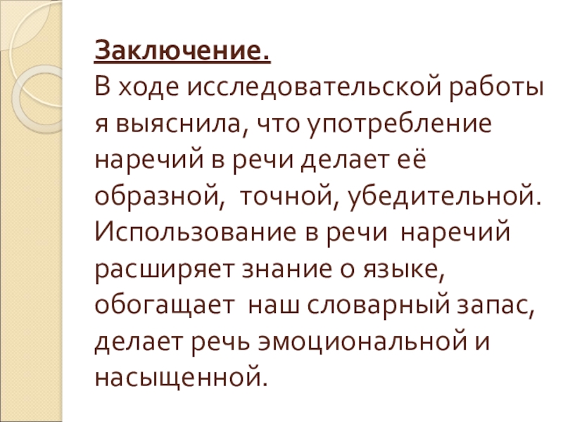 делает её образной, точной, убедительной. Использование в речи наречий расширяет знание о языке, обогащает наш словарный запас, делает речь эмоциональной и насыщенной.