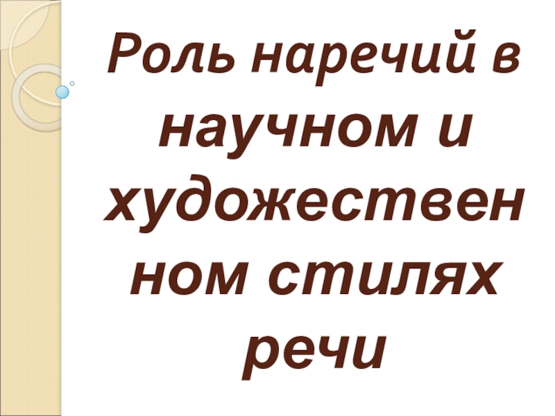 Слайд 1Роль наречий в научном и художественном стилях речи