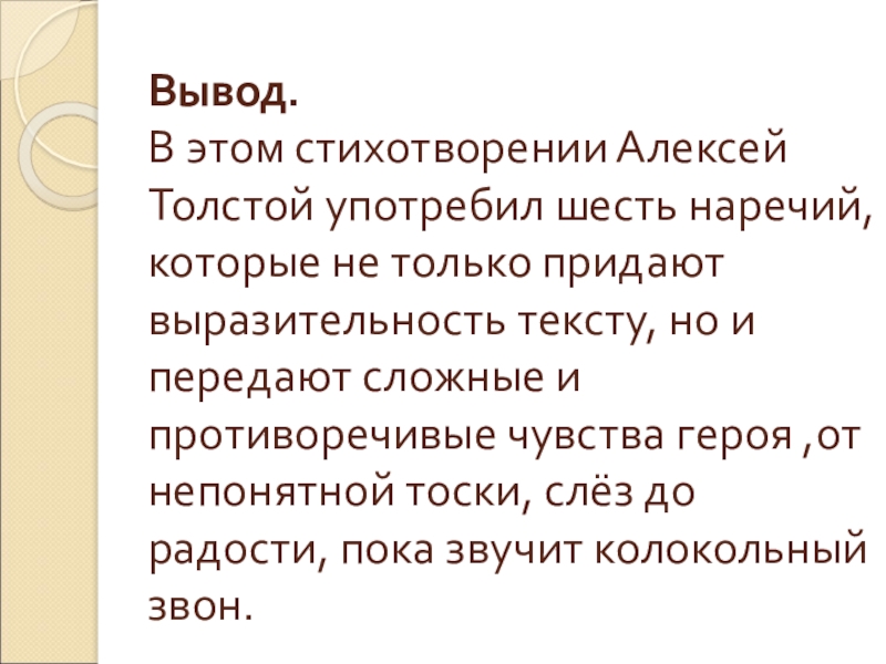придают выразительность тексту, но и передают сложные и противоречивые чувства героя ,от непонятной тоски, слёз до радости, пока звучит колокольный звон.