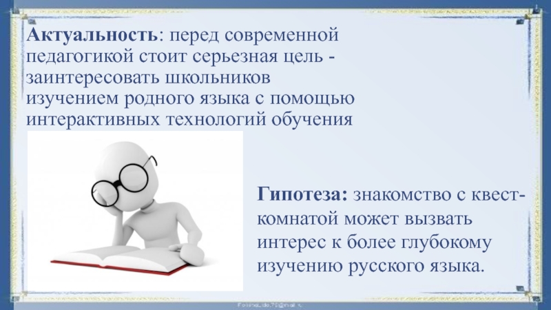 Гипотеза: знакомство с квест-комнатой может вызвать интерес к более глубокому изучению русского языка.