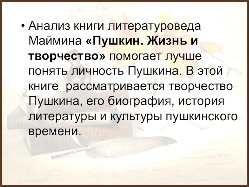 Анализ книги литературоведа Маймина «Пушкин. Жизнь и творчество» помогает лучше понять