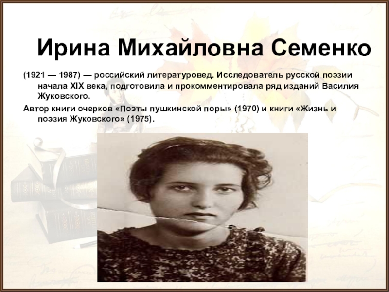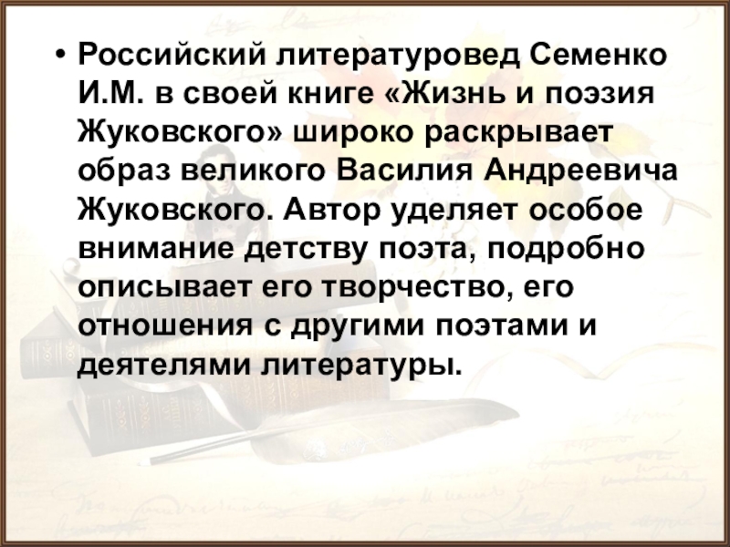 книг Е. А. Маймина «Пушкин. Жизнь и творчество» и И. М. Семенко «Жизнь и поэзия Жуковского» .