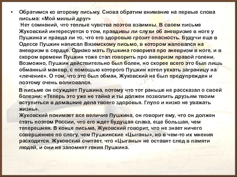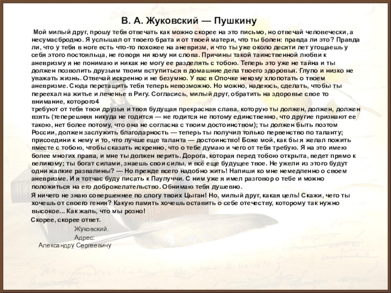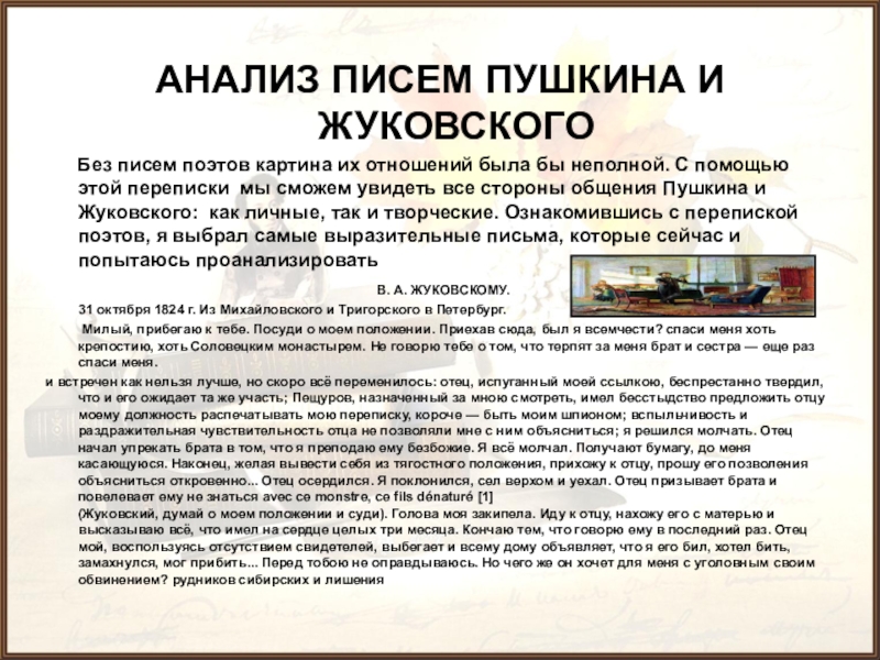 АНАЛИЗ ПИСЕМ ПУШКИНА И ЖУКОВСКОГО