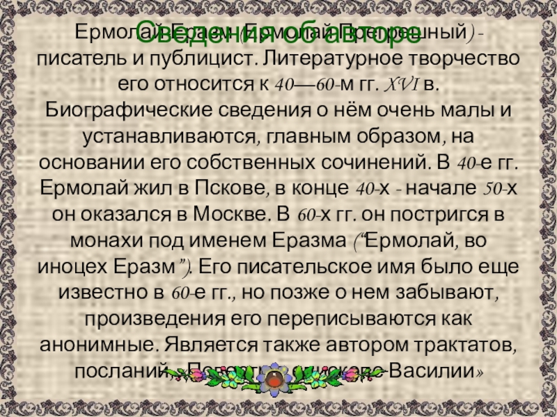 Это сайт презентаций, где можно хранить и обмениваться своими презентациями, докладами, проектами, шаблонами в формате PowerPoint с другими пользователями. Мы помогаем школьникам, студентам, учителям, преподавателям хранить и обмениваться учебными материалами.