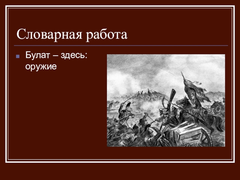 Словарная работаУланы - вид лёгкой кавалерии, первоначально вооруженной пиками и саблями. Отличительная их черта – пёстрые значки
