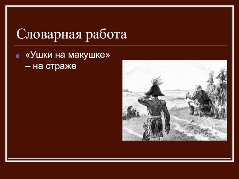 Словарная работа«На зимние квартиры» - место расположения временного расквартирования воинской части