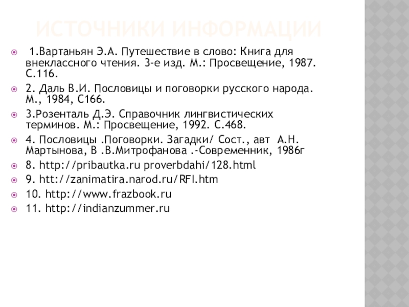 1.Вартаньян Э.А. Путешествие в слово: Книга для внеклассного